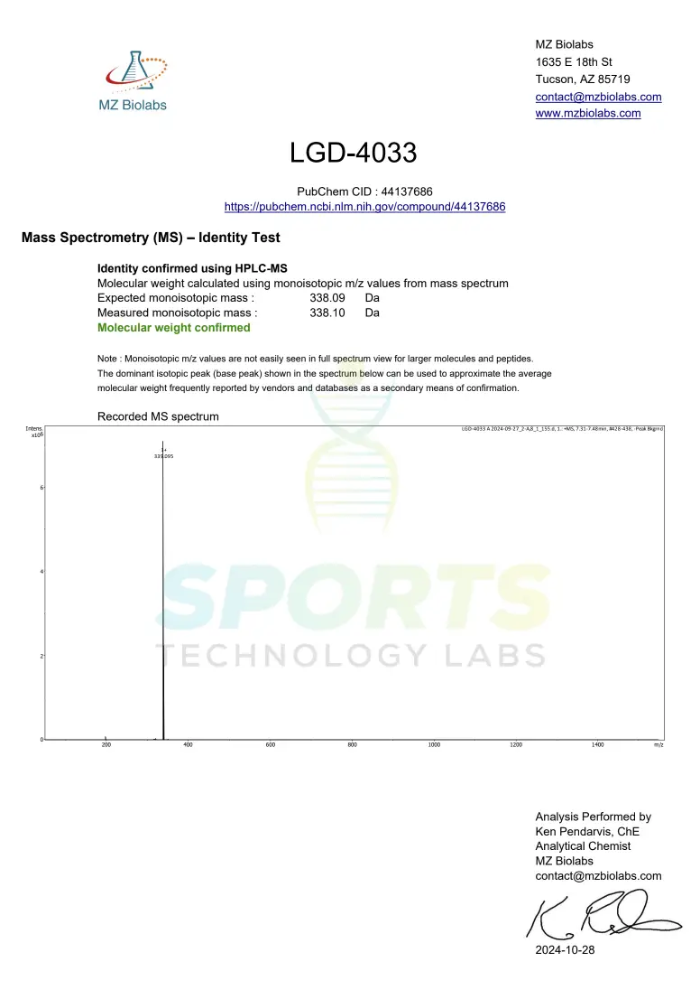 When you buy SARMs from Sports Technology Labs, you are choosing the highest quality ingredients. Minimum 98% pure compounds tested and certified by accredited American third-party labs, suspended in USP-grade (the highest grade) PEG-400, bottled in America.
